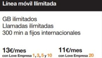 Desde 13 €/mes o 11€/mes (love empresa 20) tendrás una línea Adicional con:
